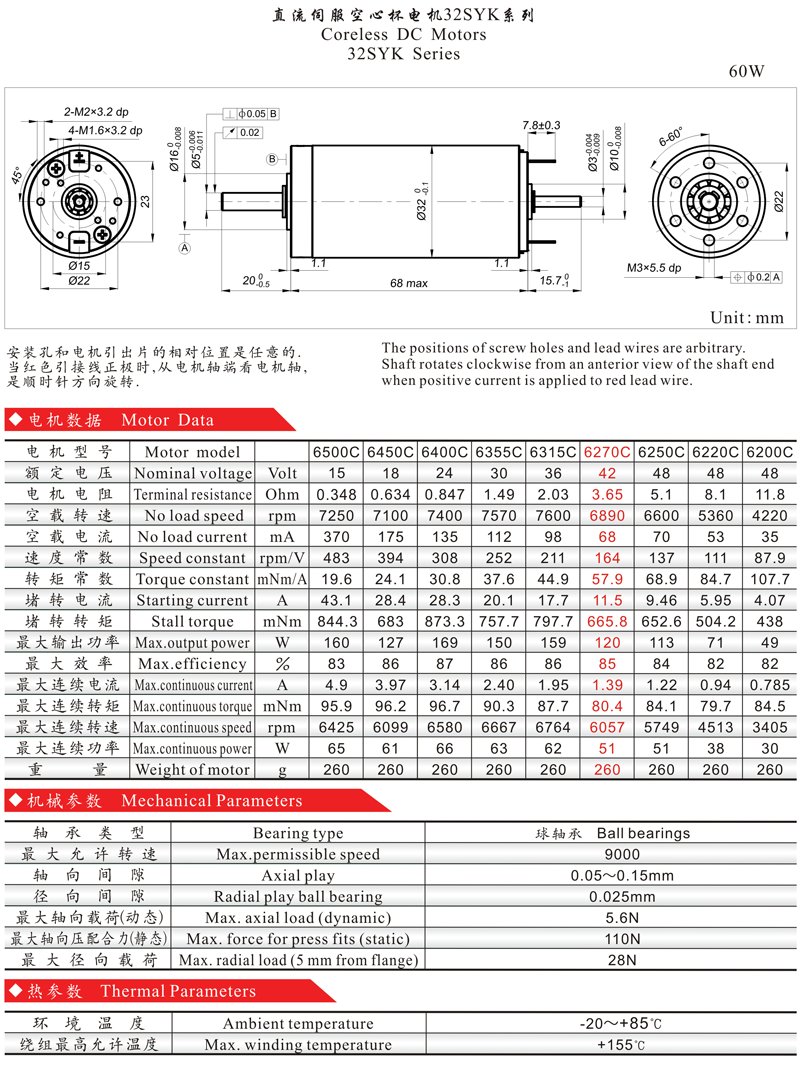 32SYK6270.C DC Coreless Motor